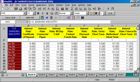 the variable designations on row 2. To enter data, place the cursor on row four (4). We recommend that